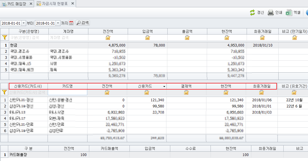 신용카드별 잔액조회