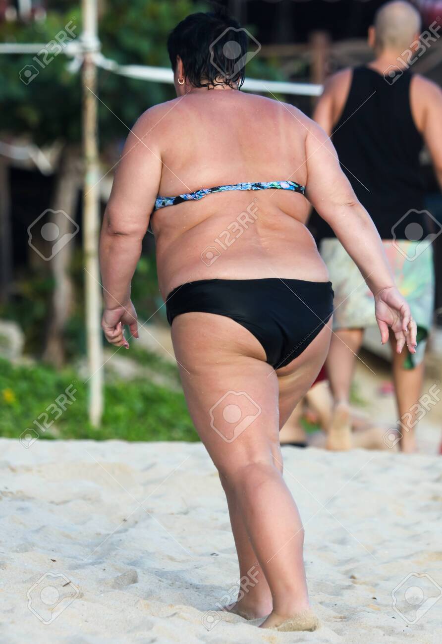 해변에서 수영복을 입은 뚱뚱한 여자. 로열티 무료 사진, 그림, 이미지 ...