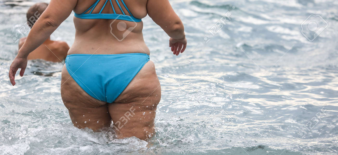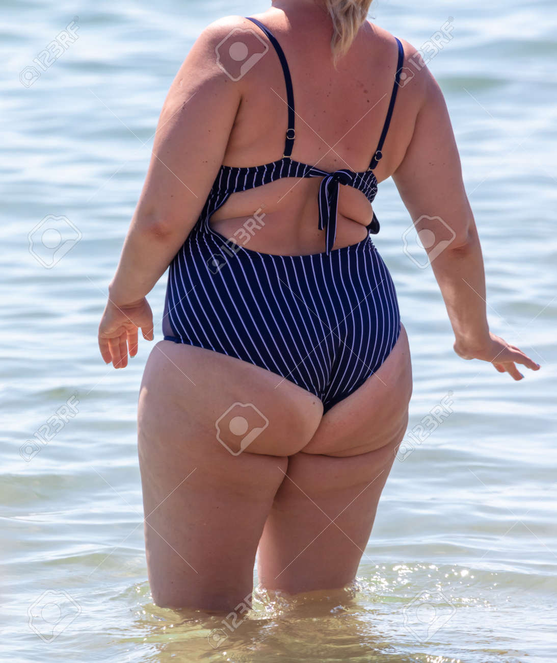 바다에서 수영복을 입은 뚱뚱한 여자. 로열티 무료 사진, 그림, 이미지 ...