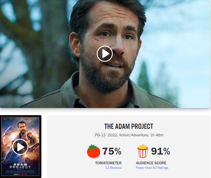 익스트림무비 - 라이언 레이놀즈 넷플릭스 신작 '애덤 프로젝트' 로튼 ...