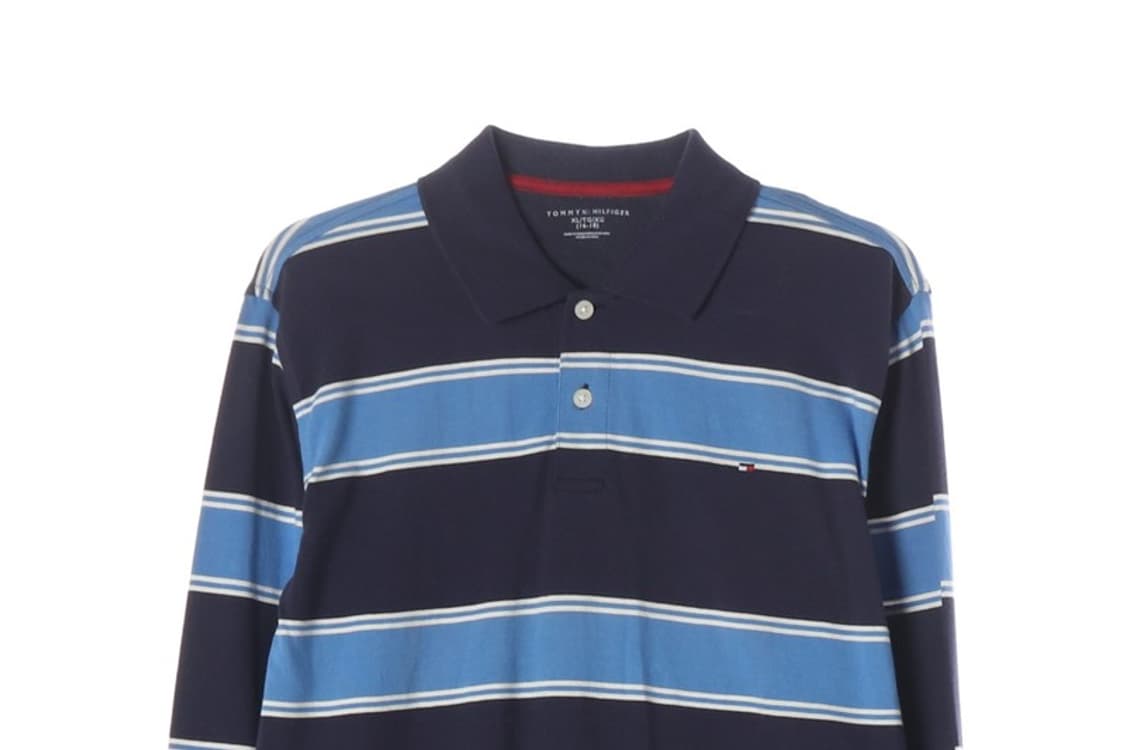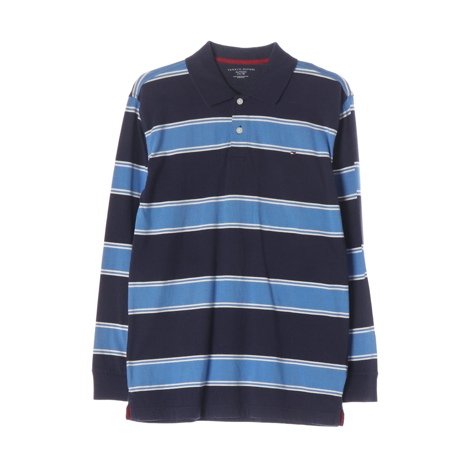 타미힐피거 스트라이프 긴팔 폴로 셔츠 네이비 XL 16-18 | 세컨솔드