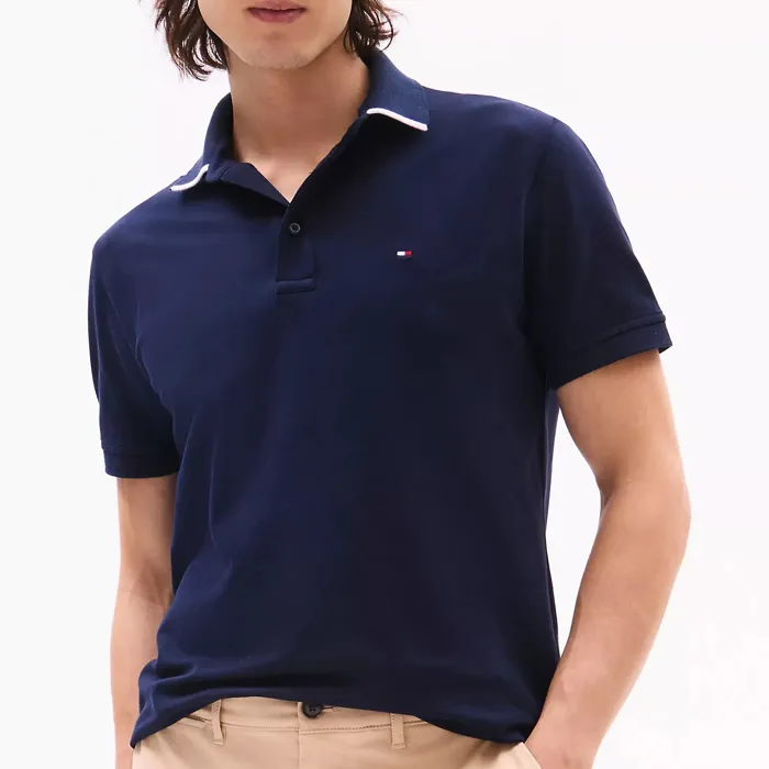 타미힐피거 타미 남성 SS 레귤러핏 언더 칼라 로고 폴로 Navy ...