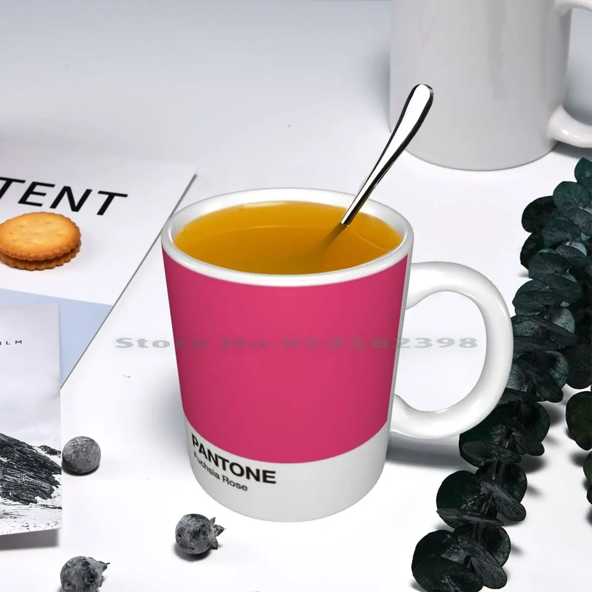 팬톤 컬러 푸시아 로즈. 컬러 2001 년. 세라믹 머그잔 커피 컵 ...