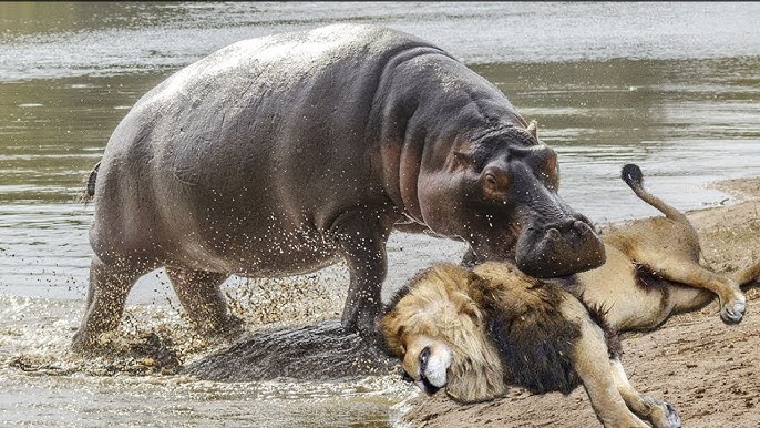 화난 사자와 하마의 전투!! hippo vs lion real fights
