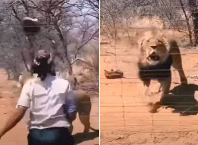 사육사가 던져준 먹이 자기 얼굴로 '쿵' 떨어져 부딪히자 고함 지르며 ...