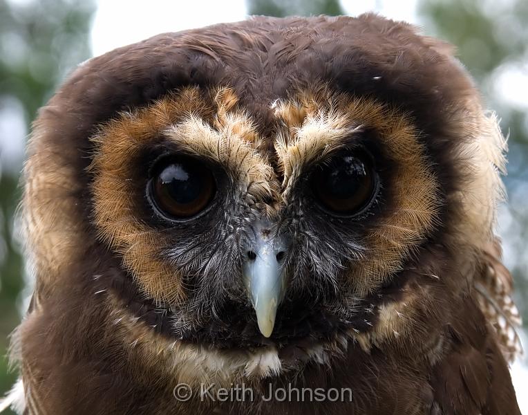 a whitish to light brown facial disc, brown eyes surrounded by