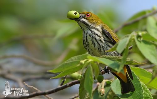 French: Dicйe cul-d’or; German: Gelbsteiss-Mistelfresser;